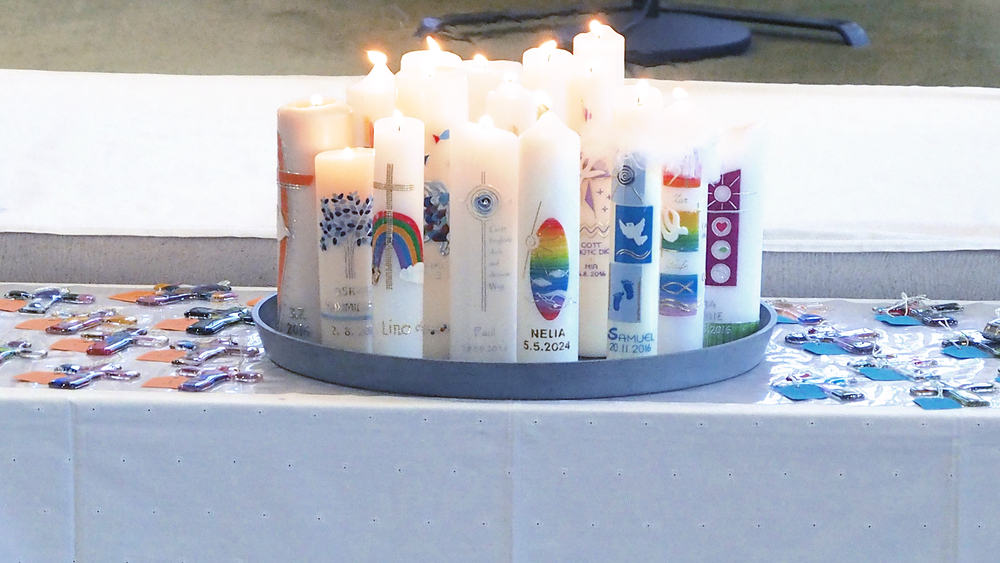 Bestens vorbereitet konnte somit am 5. Mai 2024 die erste Kommunion der Kinder gefeiert werden. Gemeinsam mit Vikar Willi Schwärzler durften 17 Erstkommunikanten bei feierlichem Orgelklang in eine festlich dekorierte Röthner Kirche einziehen.
