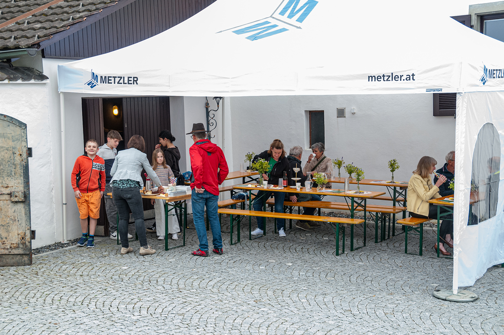 Bei trockenem Wetter waren am nächsten Veranstaltungstag Besucher:innen im ganzen Dorf unterwegs. Der "Kunst-Marktplatz" sorgte für eine gelungene Abwechslung im sonst eher ruhigeren Ort und wurde gegen geselliges Beisammensein und Begegnung eingetauscht.